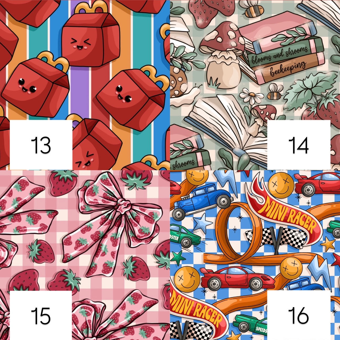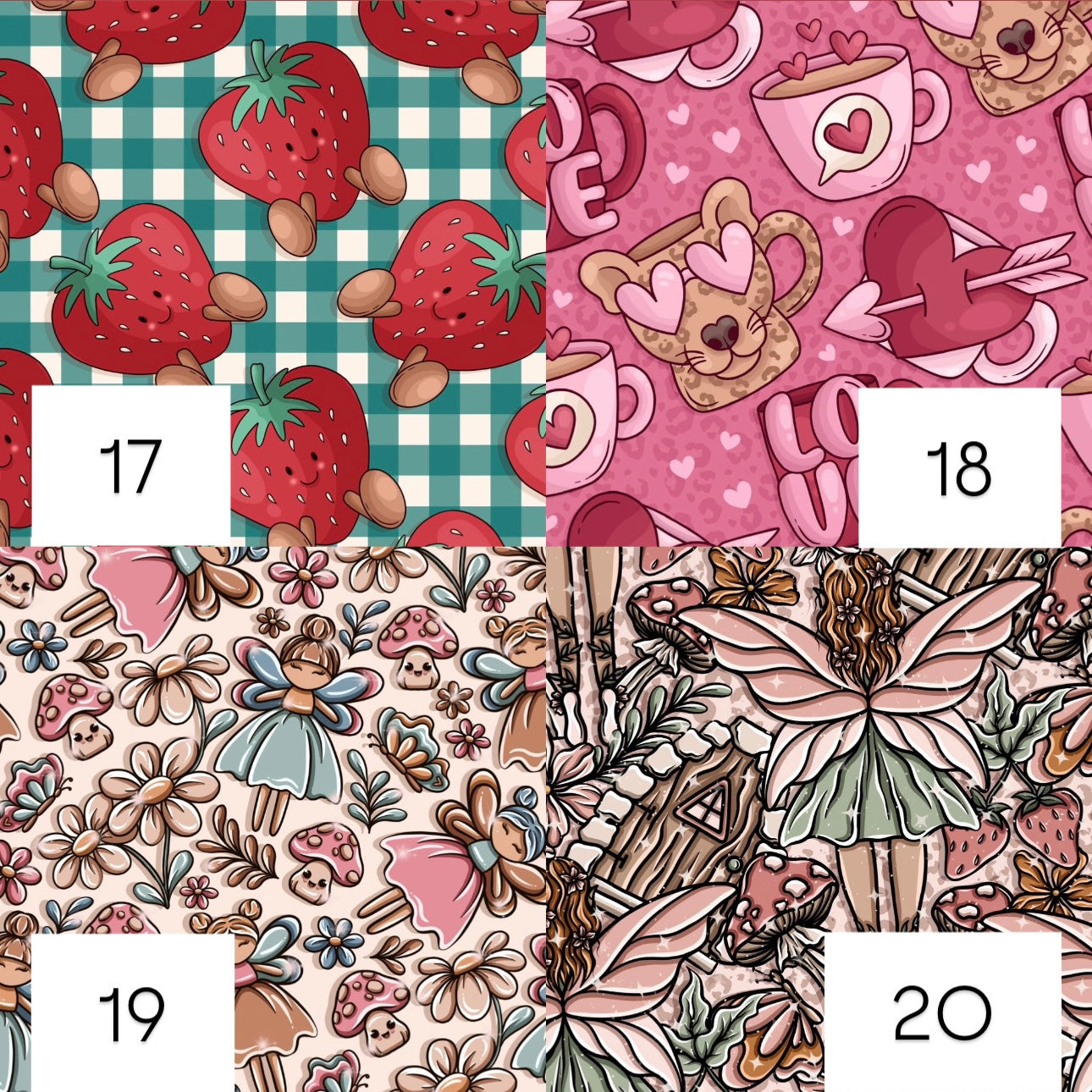 Please state what fabric you would like in the Fabric Design box by stating the number shown on the design